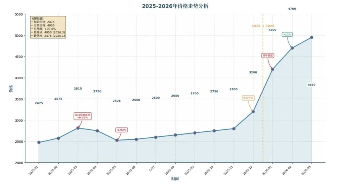 本年以来,铟价插足加快高潮周期。据中商信息CCM数据,1月涨至4200元/千克,2月打破4700元/千克,戒指3月中旬均价约4950元/千克,较2025岁首翻倍,创下十年新高。